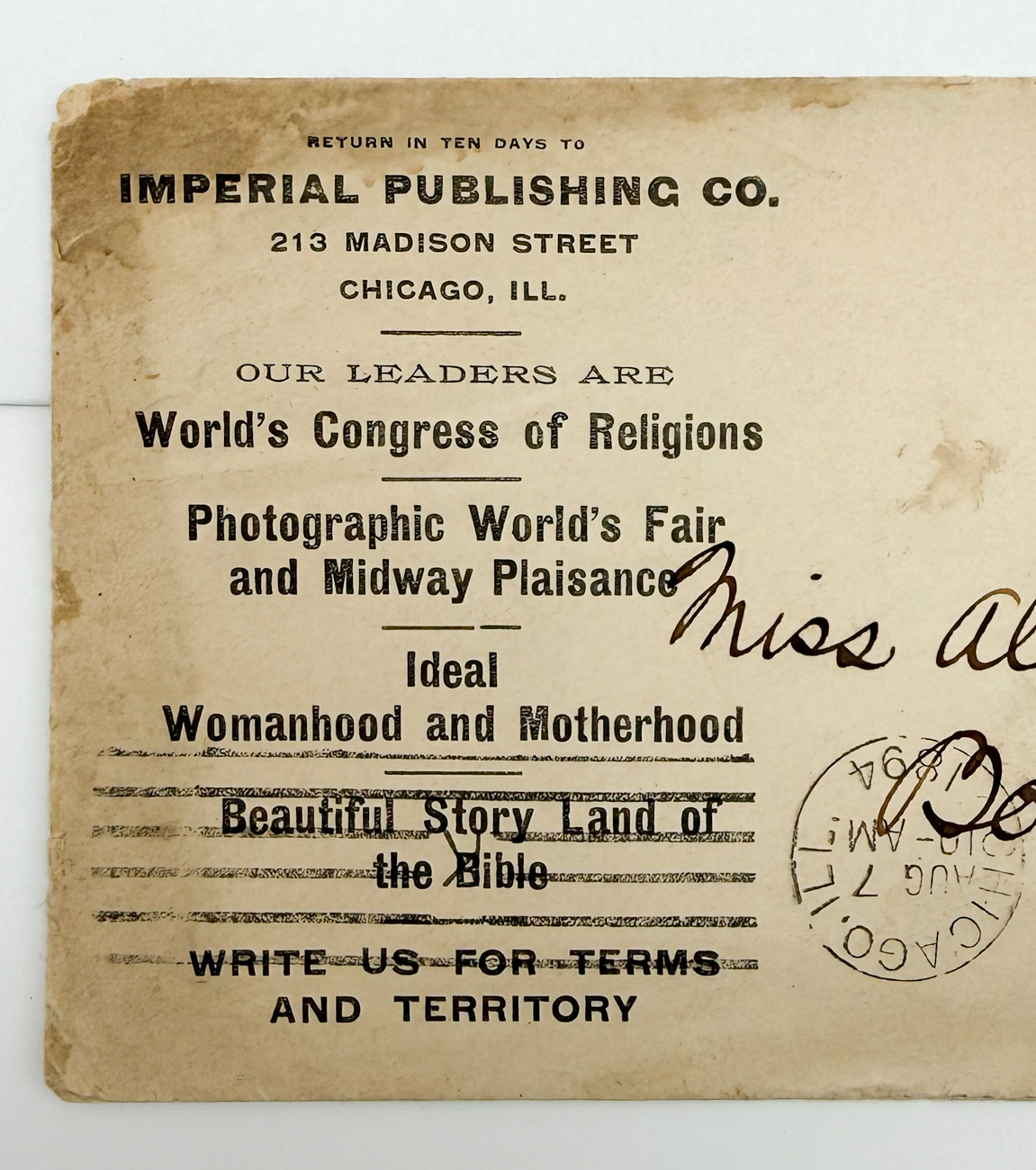 Representative of the Chicago-based door-to-door subscription publishing ecosystem contemporaneous with the books and sales materials in the collection. (1 item)